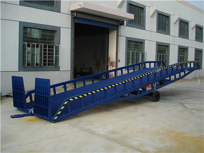 移動(dòng)式液壓登車橋是與叉車配合使用的貨物裝卸輔助設(shè)備,可根據(jù)汽車車廂的高低調(diào)節(jié)高度,叉車可以直接通過(guò)本設(shè)備駛?cè)胲噹麅?nèi)